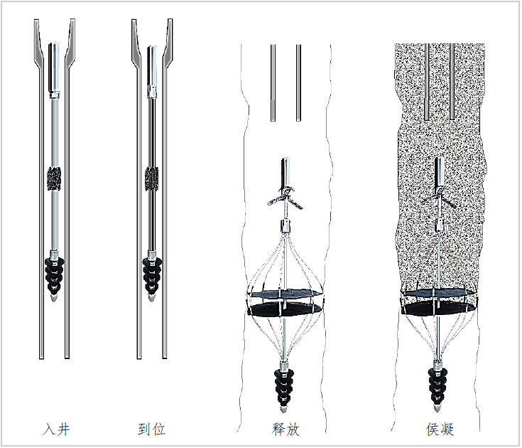 机械止退机挚,水泥篮激发后,弹性篮笼张开,匹配井壁,有效支撑,且不会因外力作用而回缩;